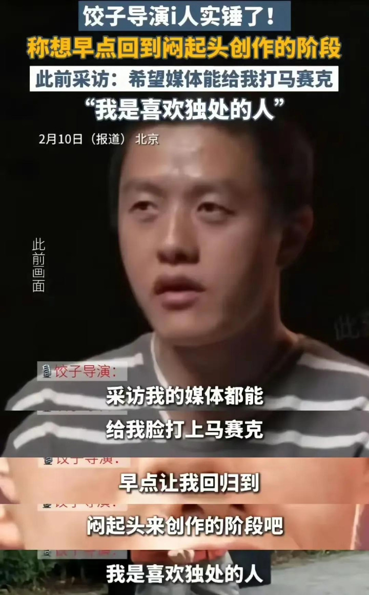 饺子接受采访时,曾提出打马赛克的请求,他只想隐在作品背后闷头创作。